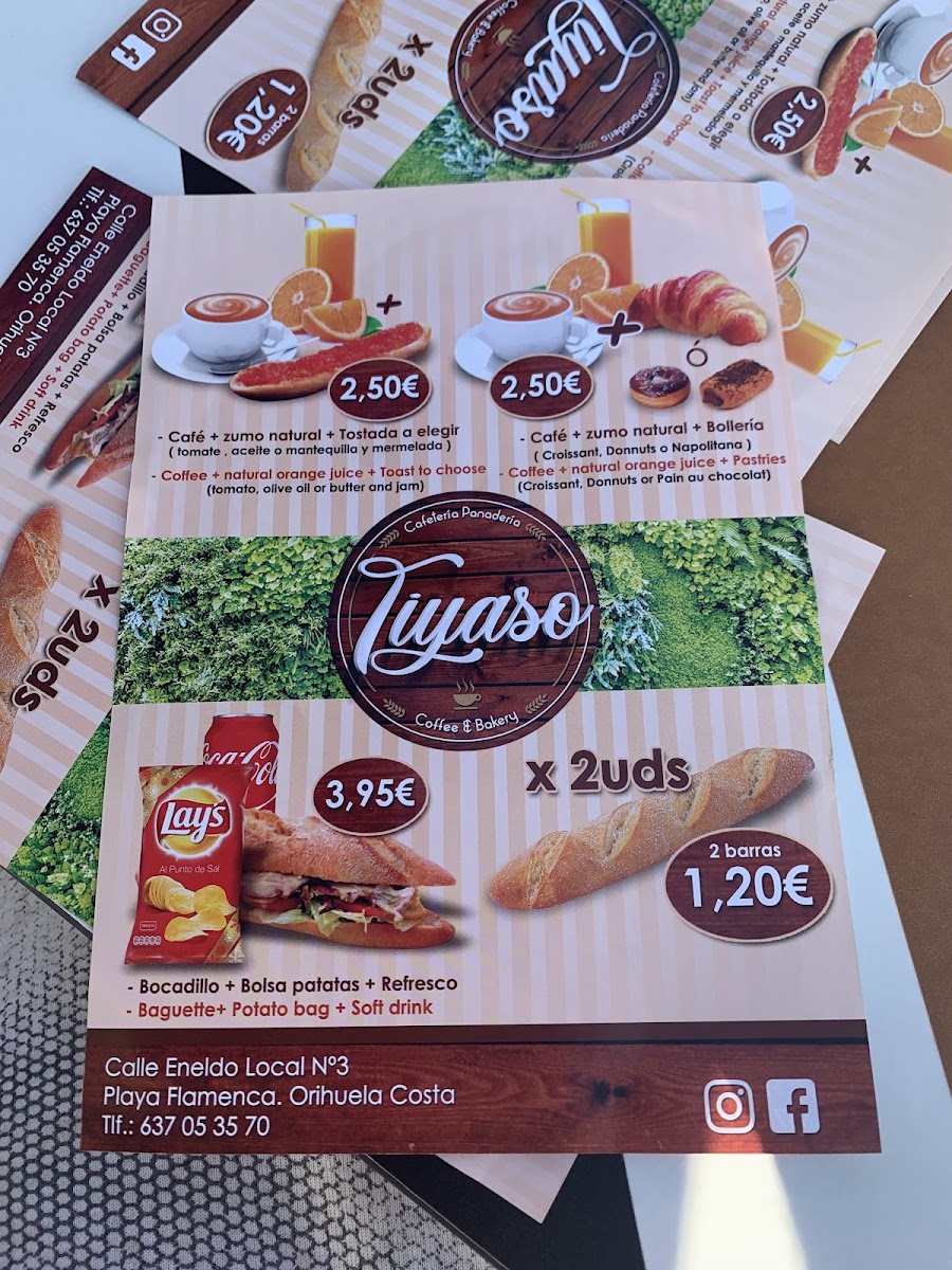 Tiyaso Cafetería Panadería Menu